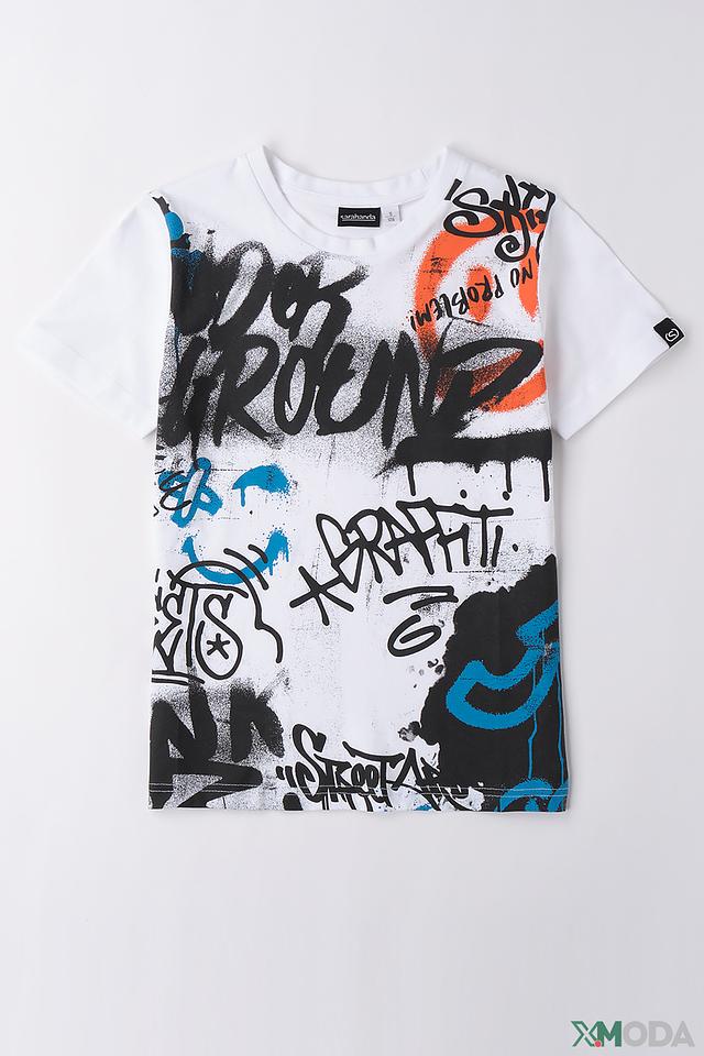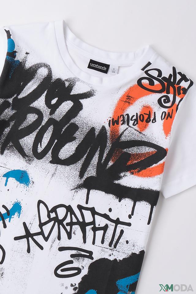 Белая футболка Sarabanda с ярким принтом в стиле граффити станет отличным дополнением к гардеробу вашего мальчика. Изготовлена из 100% хлопка, обеспечивая комфорт и удобство в носке. Состав: хлопок 100%