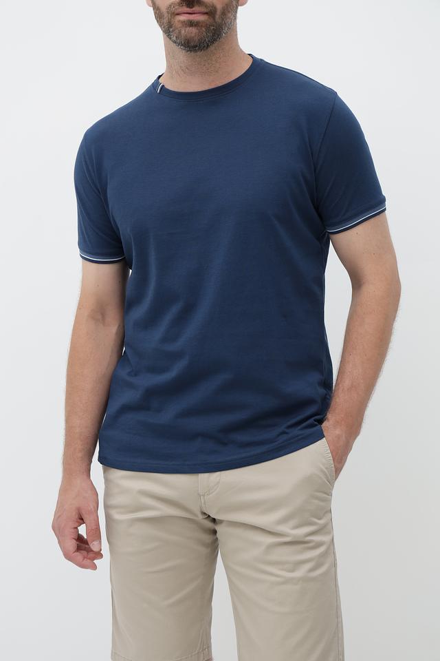 Мужская футболка Sea Barrier синего цвета с контрастной полоской на рукавах. Изготовлена из 100% хлопка, обеспечивающего комфорт и воздухопроницаемость. Отличный выбор для повседневной носки. Состав: хлопок 100%