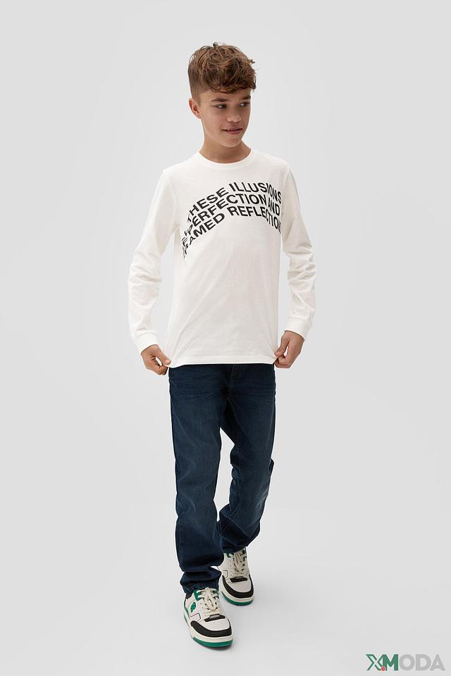 Белая футболка s.Oliver для мальчика с длинным рукавом и оригинальным принтом. Изготовлена из 100% хлопка, обеспечивая комфорт и удобство в носке. Отличный выбор для повседневной носки. Состав: хлопок 100%