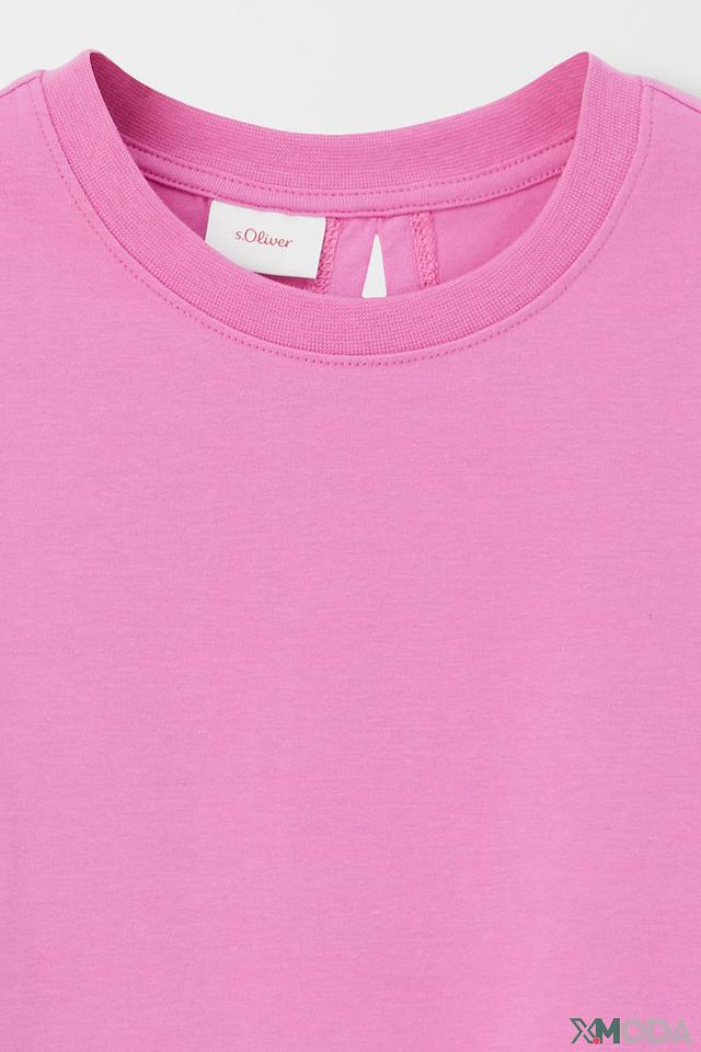 Розовая футболка s.Oliver для девочек – это удобная и стильная базовая вещь. Футболка имеет короткий рукав и круглый вырез горловины, а также оригинальный вырез на спине. Изготовлена из мягкого хлопка с добавлением эластана. Состав: хлопок 95%, эластан 5%