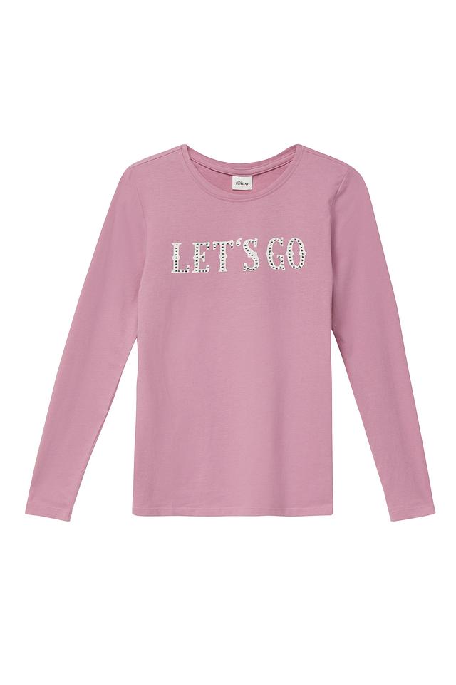 Розовая футболка s.Oliver с длинным рукавом и яркой надписью "LET'S GO" станет отличным дополнением к детскому гардеробу. Изготовлена из мягкого хлопка, обеспечивающего комфорт в течение дня. Состав: хлопок 100%