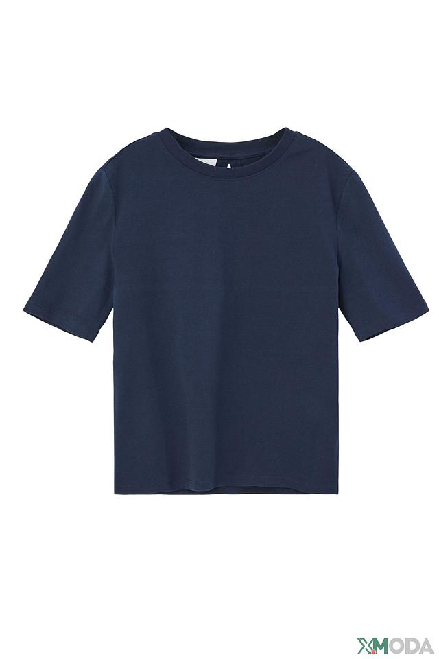 Тёмно-синий цвет футболки универсален и легко сочетается с другой одеждой. Она идеально подходит для повседневной носки, прогулок и активного отдыха. Состав: 95% хлопок, 5% эластан.