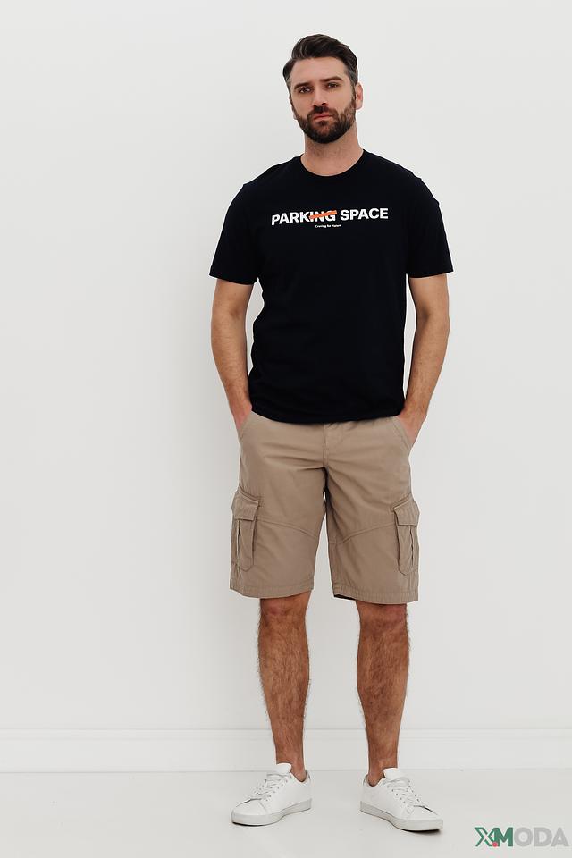 Чёрная футболка s.Oliver с ярким принтом "PARKING SPACE". Изготовлена из 100% хлопка, обеспечивая комфорт и воздухопроницаемость. Стильный и лаконичный дизайн делает эту футболку отличным выбором для повседневного образа. Состав: хлопок 100%