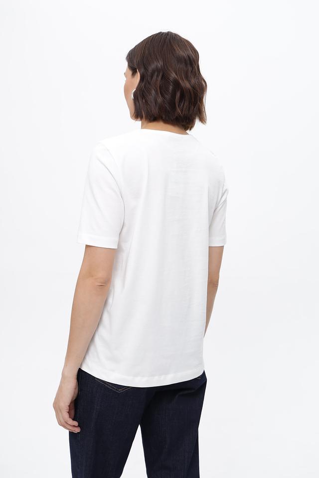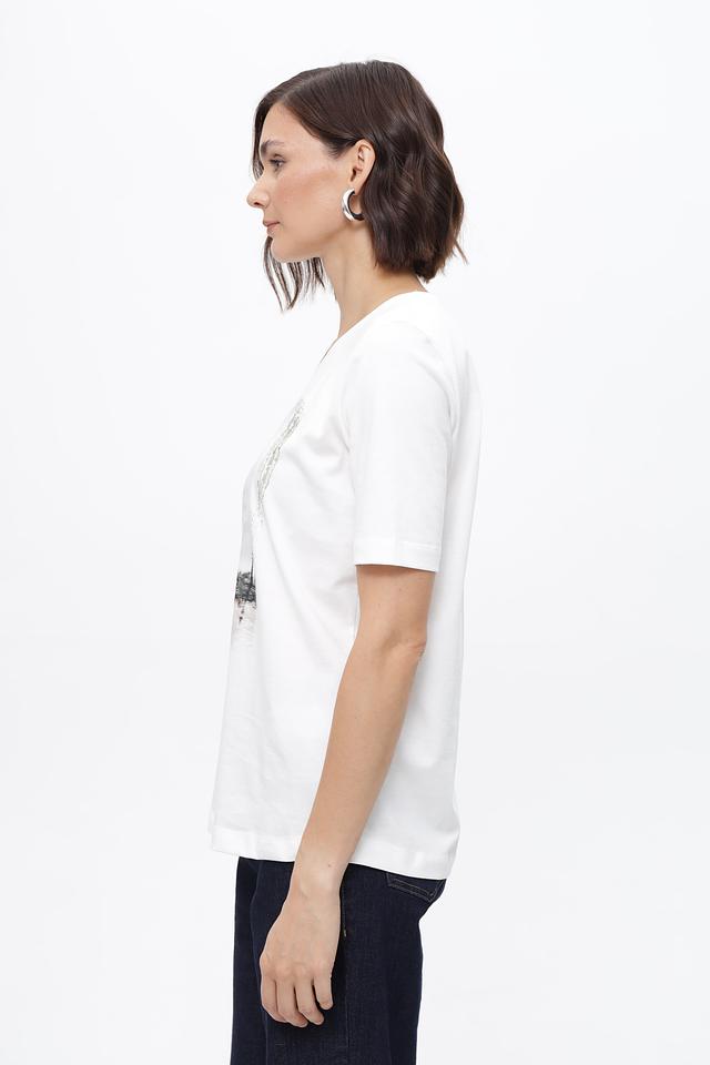 Белая футболка Steilmann с оригинальным принтом в городском стиле. Изготовлена из 100% хлопка, обеспечивающего комфорт и воздухопроницаемость. Прекрасный выбор для создания повседневных образов. Состав: хлопок 100%