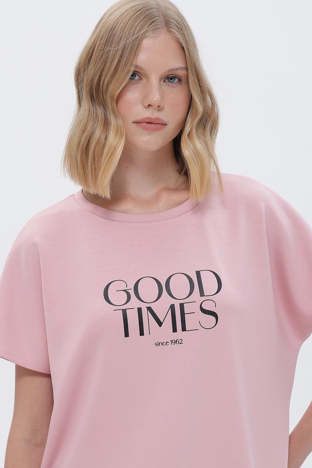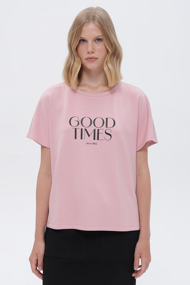 Розовая футболка от Tom Tailor свободного кроя с принтом “GOOD TIMES since 1962”. Изготовлена из мягкого трикотажа, в составе модал, полиэстер и эластан. Состав: модал 53%, полиэстер 40%, эластан 7%