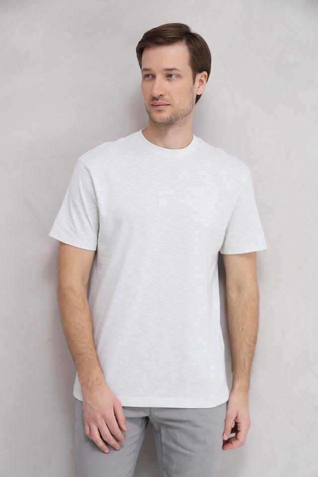 Мужская футболка Tom Tailor denim серого меланжевого цвета с небольшим принтом на груди. Изготовлена из 100% хлопка, обеспечивающего комфорт и воздухопроницаемость. Состав: хлопок 100%