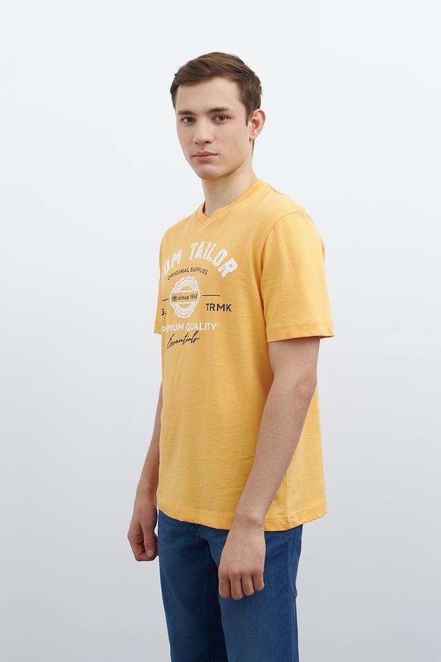 Мужская футболка Tom Tailor горчичного цвета с оригинальным принтом на груди. Изготовлена из 100% хлопка, обеспечивающего комфорт и воздухопроницаемость. Отличный выбор для повседневного образа. Состав: хлопок 100%