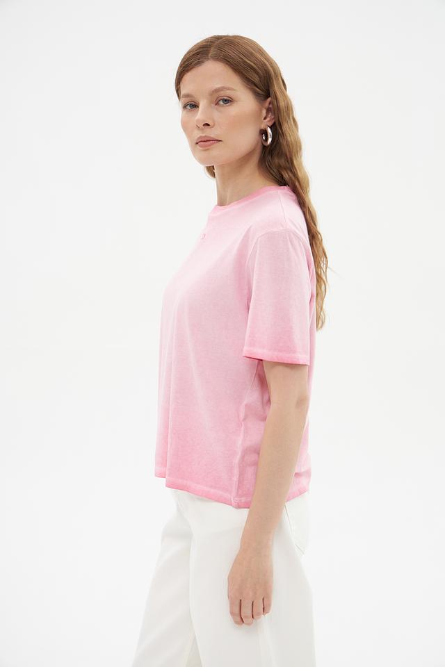 Футболка имеет свободный крой, который не сковывает движения, и короткие рукава, идеально подходящие для теплой погоды. Небольшой логотип бренда на груди добавляет стильный акцент.