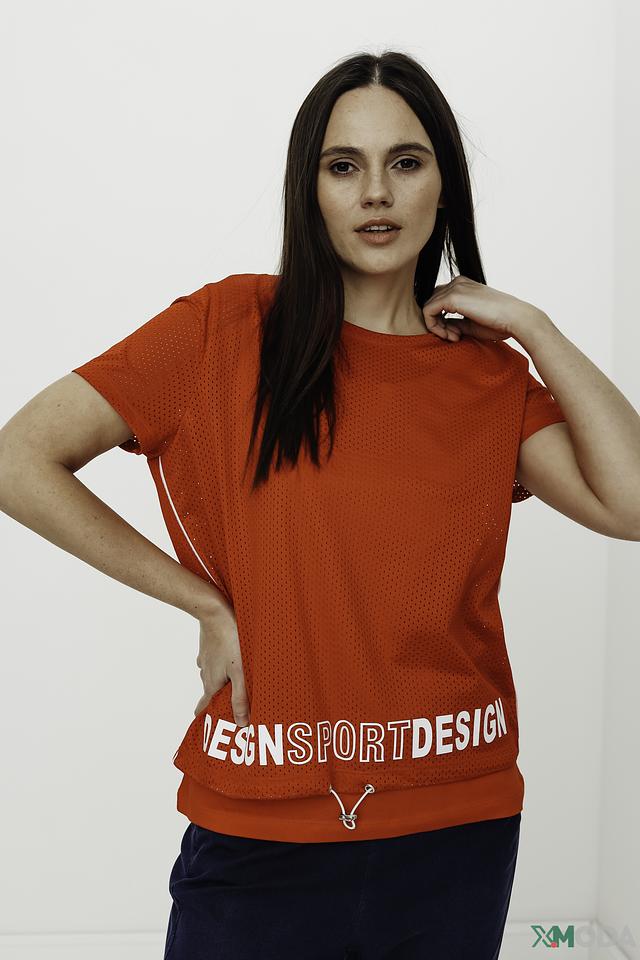 Красная футболка Tuzzi из 100% полиэстера с ярким принтом "SPORTDESIGN". Модель свободного кроя с короткими рукавами и сетчатыми вставками для дополнительного комфорта и воздухопроницаемости. Состав: полиэстер 100%