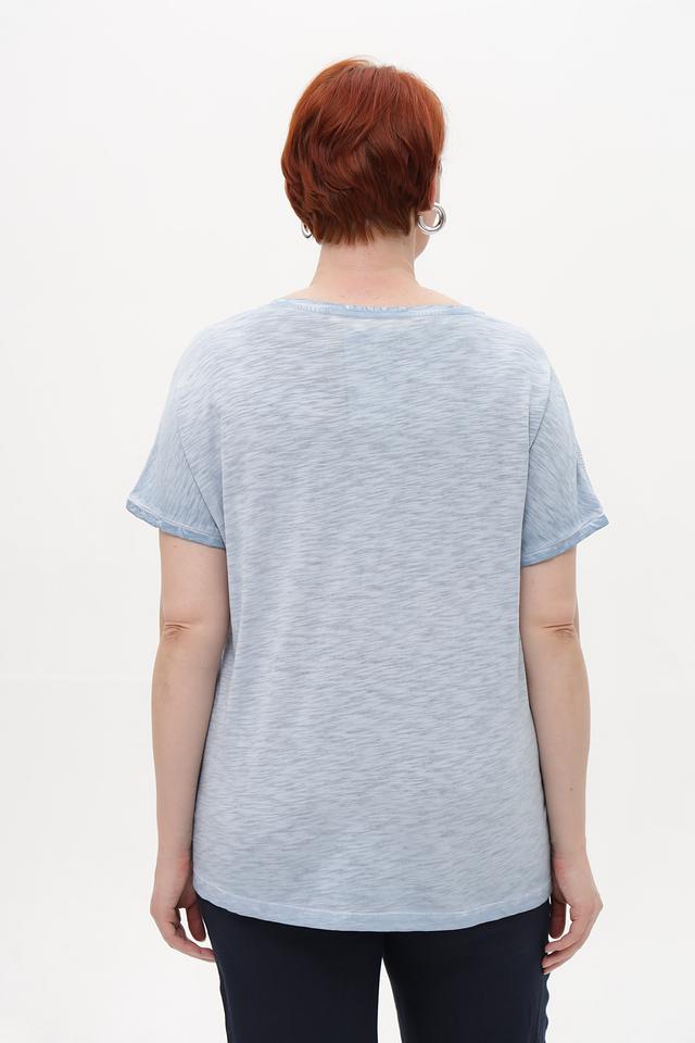 Женская футболка от Via Appia – это стильное и комфортное решение для повседневного образа. Футболка выполнена в приятном голубом цвете и украшена крупным цветочным принтом, сочетающим в себе чёрные, зелёные и серые оттенки.