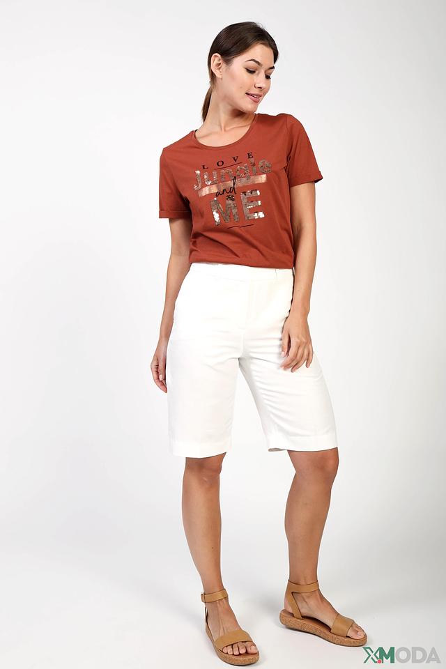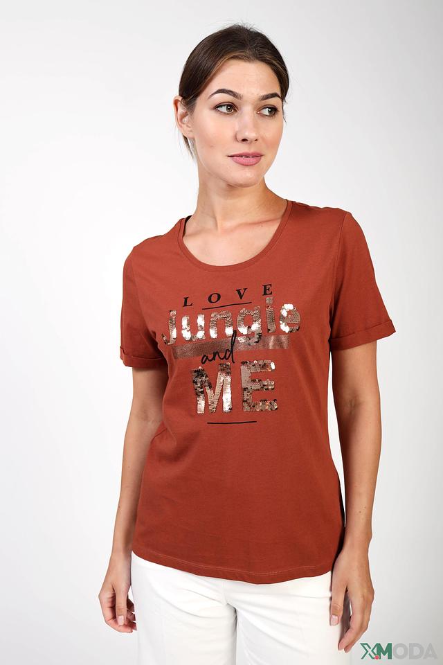 Женская футболка Via Appia терракотового цвета с эффектным декором из пайеток. Модель выполнена из 100% хлопка, обеспечивая комфорт и удобство в носке. Стильный принт добавит образу оригинальности. Состав: хлопок 100%