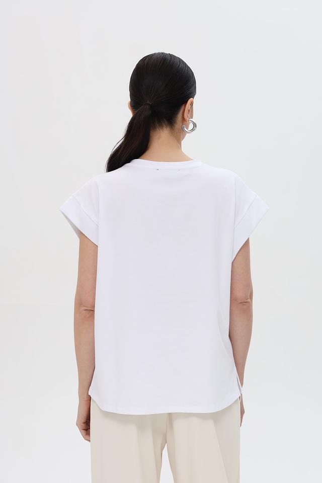 Благодаря своему лаконичному дизайну, эта футболка легко сочетается с различными элементами одежды – от джинсов и шорт до юбок и брюк. Она идеально подходит для создания как повседневных, так и более элегантных образов.