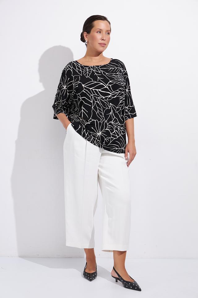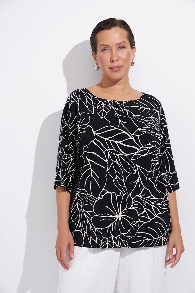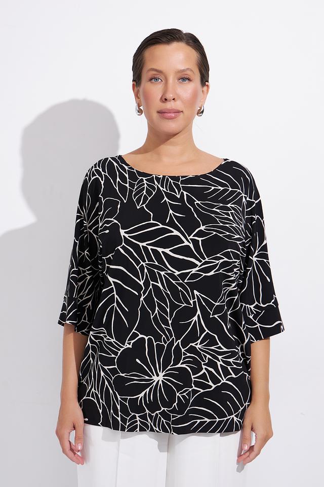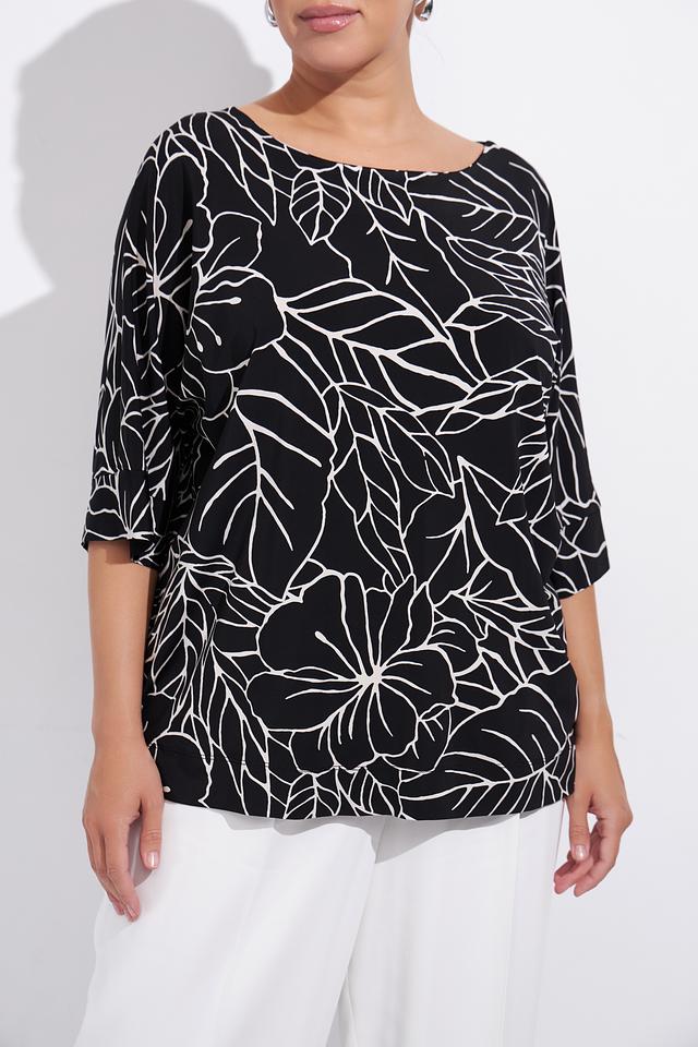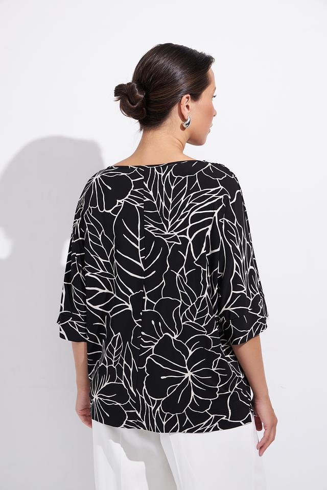 Блуза Gaia чёрного цвета с ярким белым тропическим принтом станет отличным дополнением к вашему гардеробу. Модель свободного кроя с рукавом 3/4 обеспечивает комфорт и свободу движений. Состав: вискоза 95%, эластан 5%