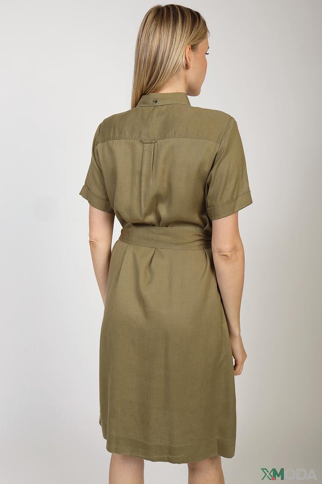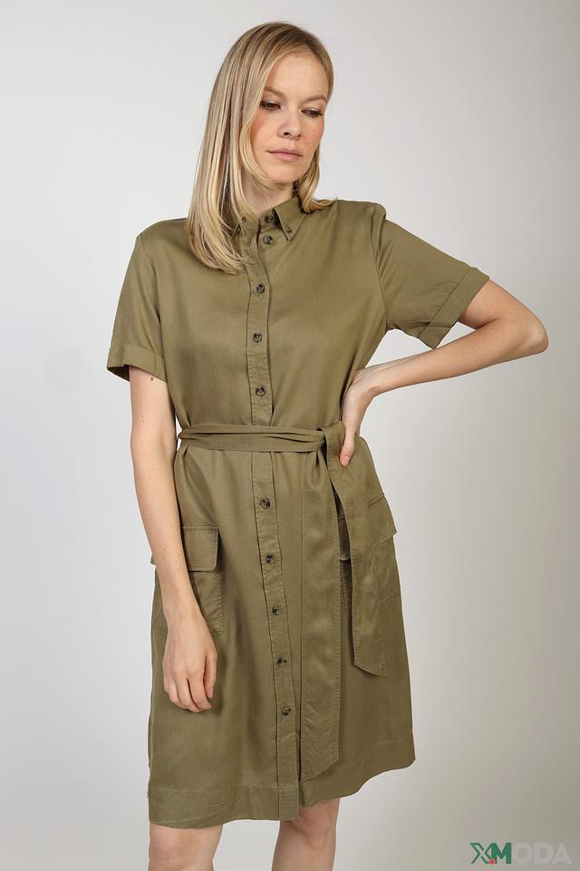 Платье Gant цвета хаки — это стильное и комфортное решение для повседневного образа. Модель выполнена из 100% луоселла, имеет приталенный силуэт с поясом и удобные накладные карманы. Состав: луоселл 100%