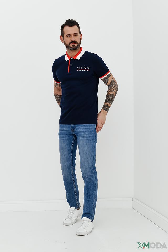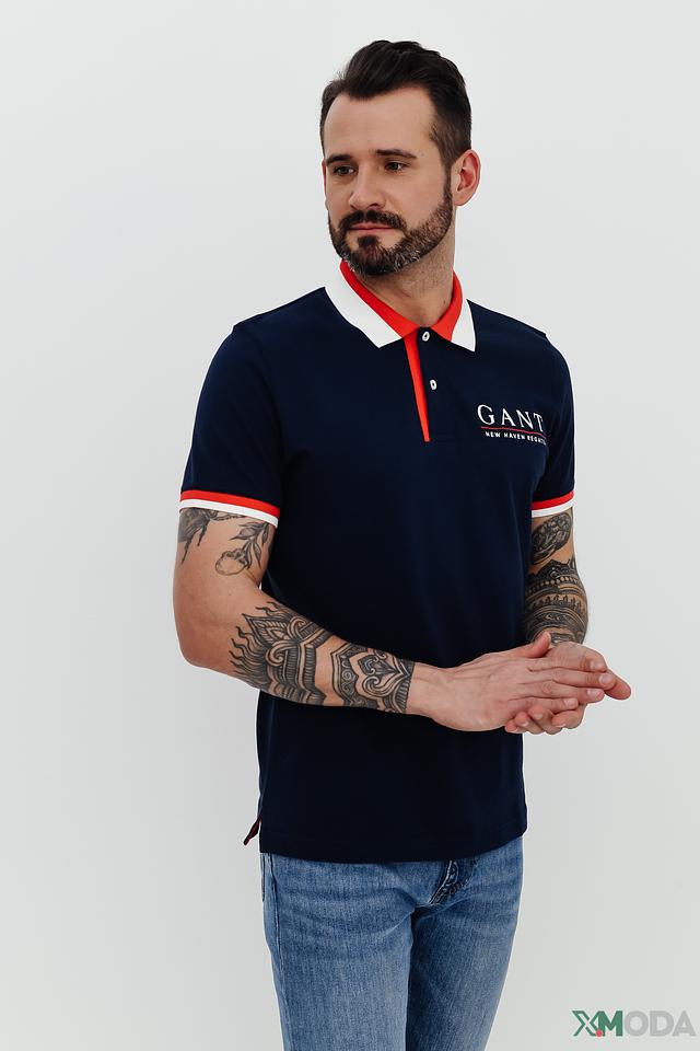 Мужское поло Gant темно-синего цвета с контрастной отделкой воротника и рукавов. Классический крой и вышитый логотип бренда делают эту модель стильной и узнаваемой. Состав: хлопок 100%