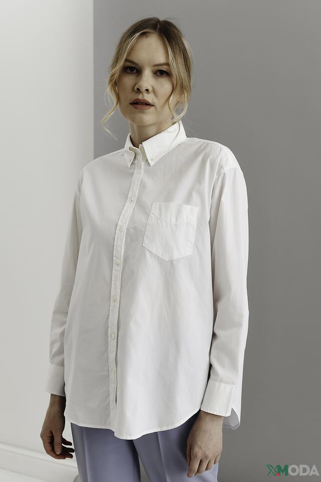 Рубашка имеет прямой, слегка свободный крой, который обеспечивает свободу движений и создает расслабленный образ. Классический воротник и длинные рукава с манжетами добавляют рубашке элегантности. На груди расположен накладной карман.