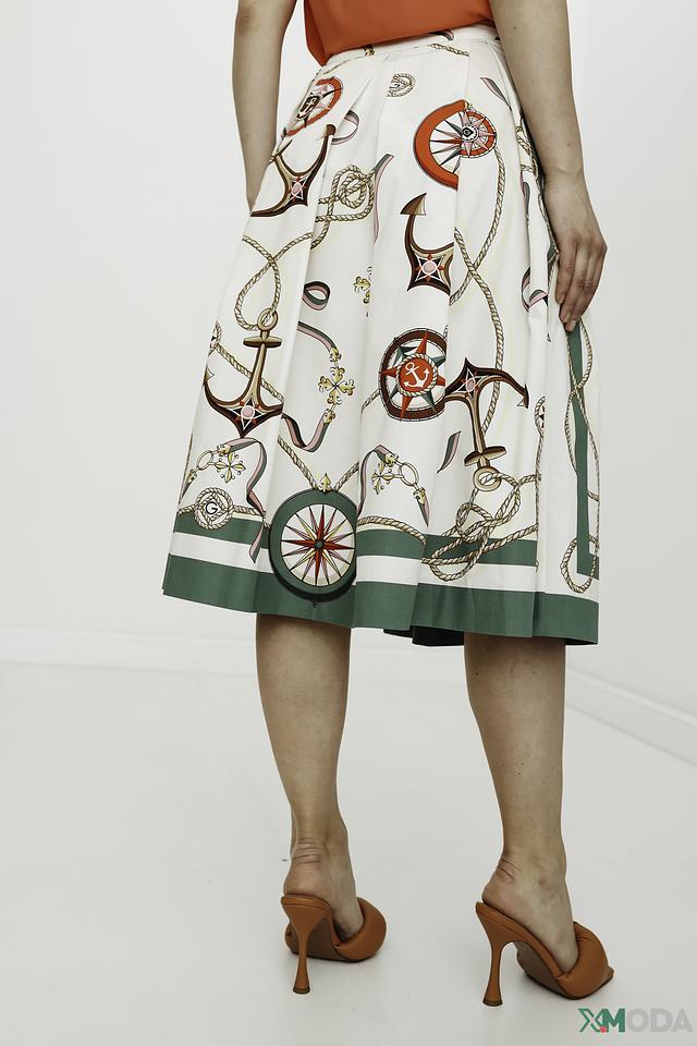 Эта юбка от Gant станет ярким акцентом вашего гардероба. Выполнена в белом цвете и украшена оригинальным принтом с морской тематикой: якорями, канатами и штурвалами.