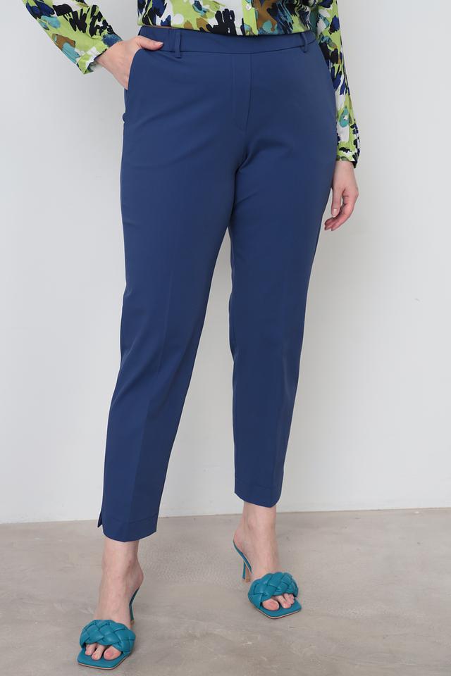Синие классические брюки Gardeur из смесовой ткани с добавлением эластана. Модель прямого кроя с застежкой на молнию и пуговицу, имеет стандартную посадку и длину 7/8. Состав: полиамид 48%, хлопок 42%, эластан 10%