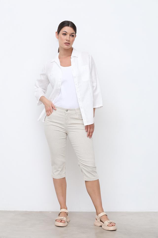 Эти женские бриджи от Gardeur станут отличным дополнением к вашему летнему гардеробу. Модель выполнена в бежевом цвете с вертикальной полоской, что придает ей свежий и современный вид.