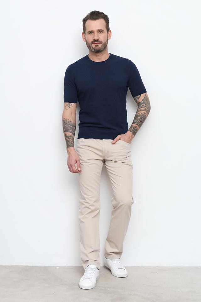 Состав брюк: 98% хлопок, 2% эластан. Брюки оснащены стандартным набором карманов – двумя боковыми и двумя задними. Застежка – молния и пуговица. Данная модель идеально подойдет для создания как повседневных, так и более формальных образов.