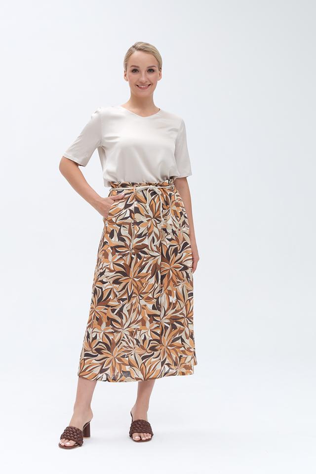 Юбка Gardeur коричневого цвета с ярким цветочным принтом – стильное и комфортное решение для летнего гардероба. Модель выполнена из натурального льна с вискозой, что обеспечивает легкость и приятные ощущения при носке. Состав: лен 53%, вискоза 47%