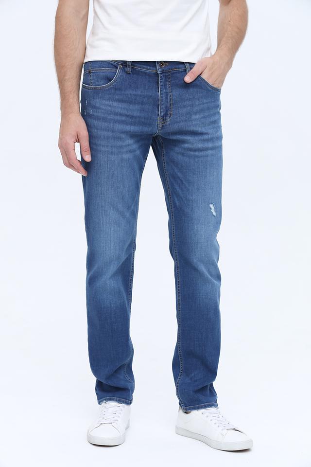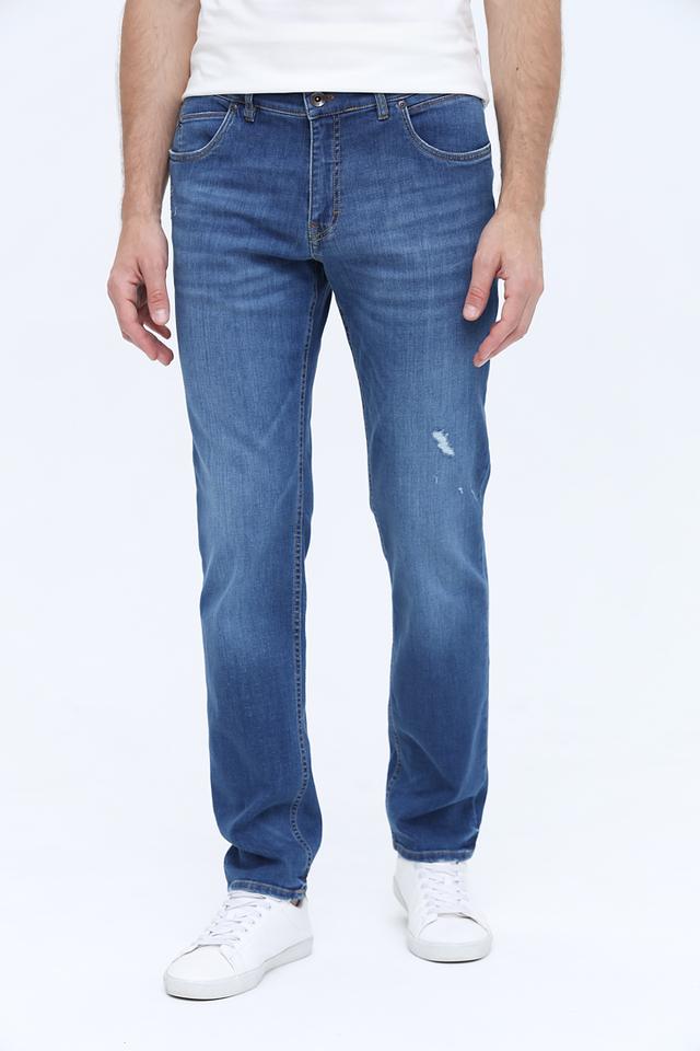 Мужские джинсы Gardeur синего цвета с эффектом потертостей и небольшими разрывами. Классический крой и комфортный состав обеспечивают удобную посадку и долговечность. Состав: хлопок 98%, эластан 2%