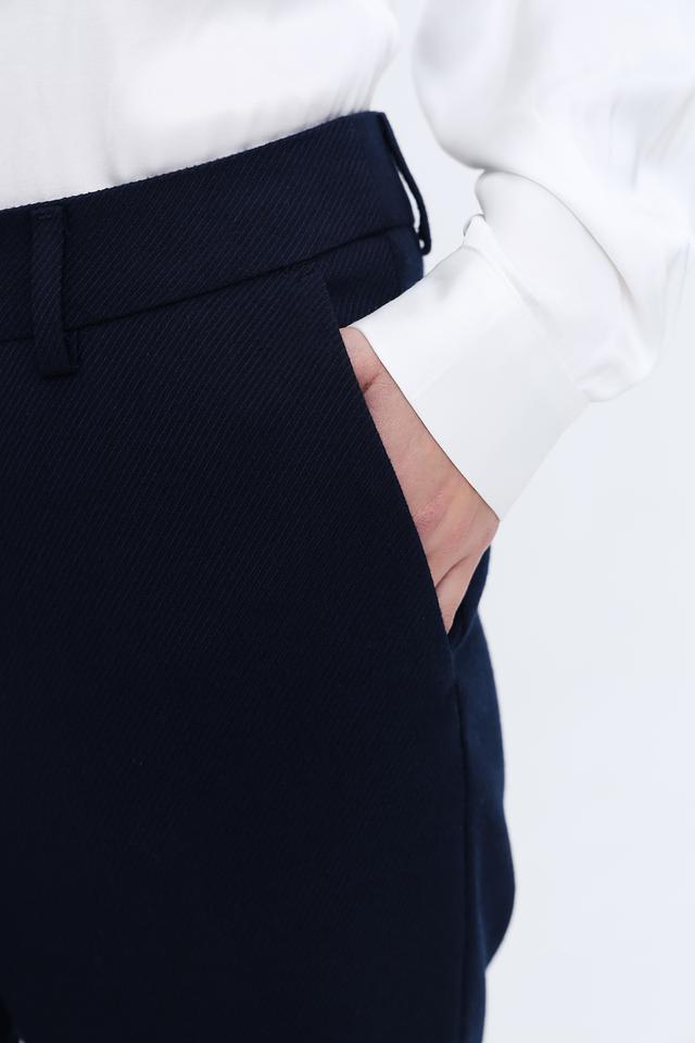Темно-синий цвет брюк делает их универсальными и легко сочетаемыми с различными элементами гардероба. На задних карманах предусмотрены аккуратные детали. Эти брюки станут незаменимой вещью в вашем гардеробе, сочетая в себе стиль, комфорт и практичность.
