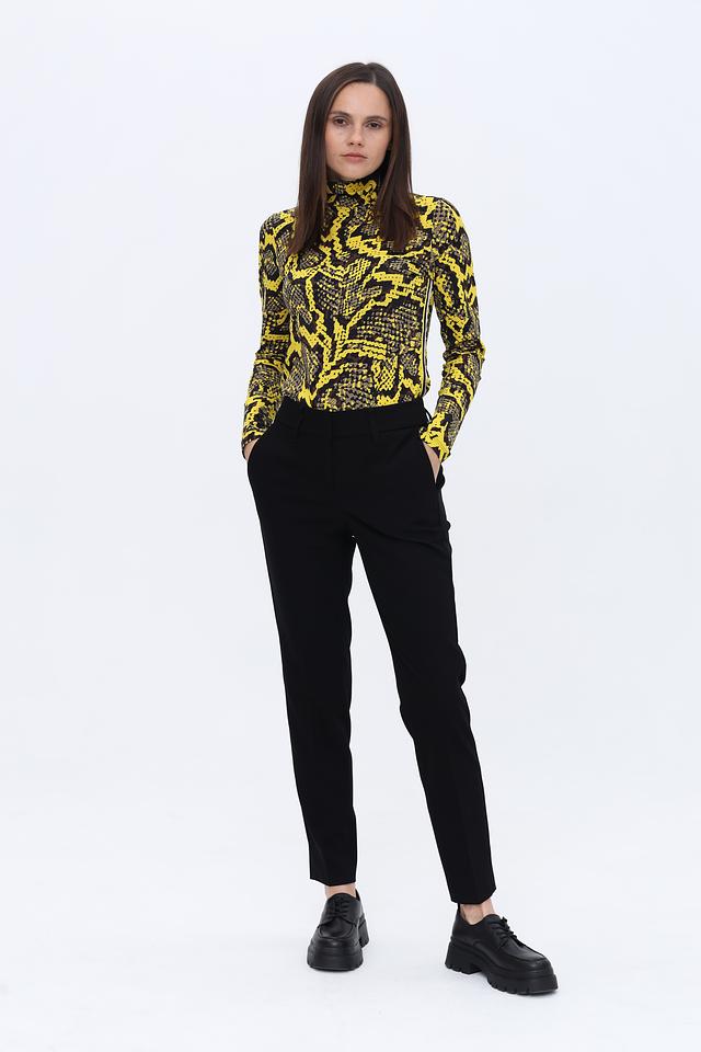 Брюки имеют прямой крой, обеспечивающий комфортную посадку по фигуре. Изготовлены из высококачественного материала, состоящего из полиэстера (69%), вискозы (24%) и эластана (7%). Такое сочетание обеспечивает приятные тактильные ощущения, хорошую износостойкость и небольшую эластичность.