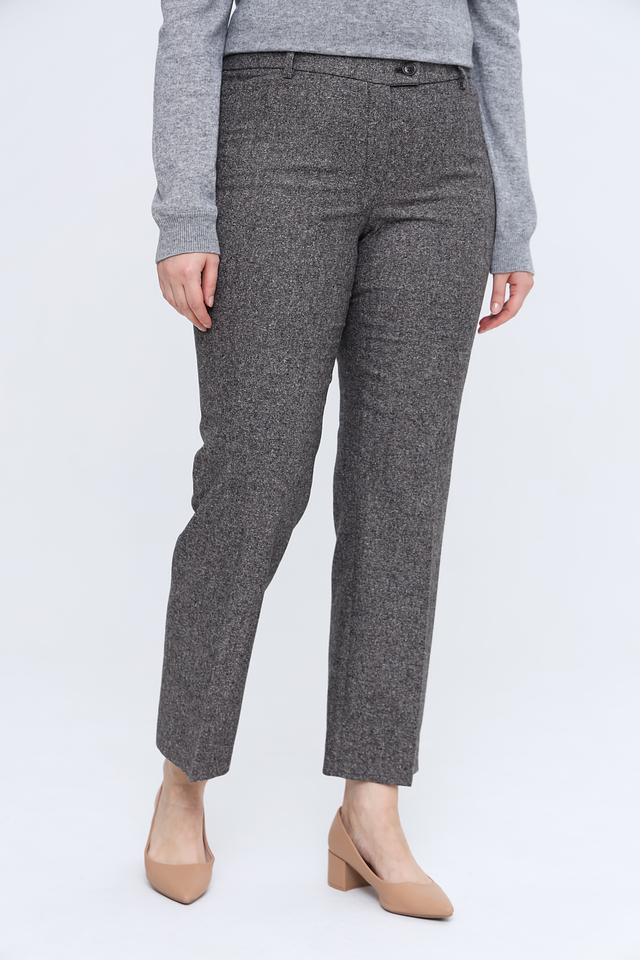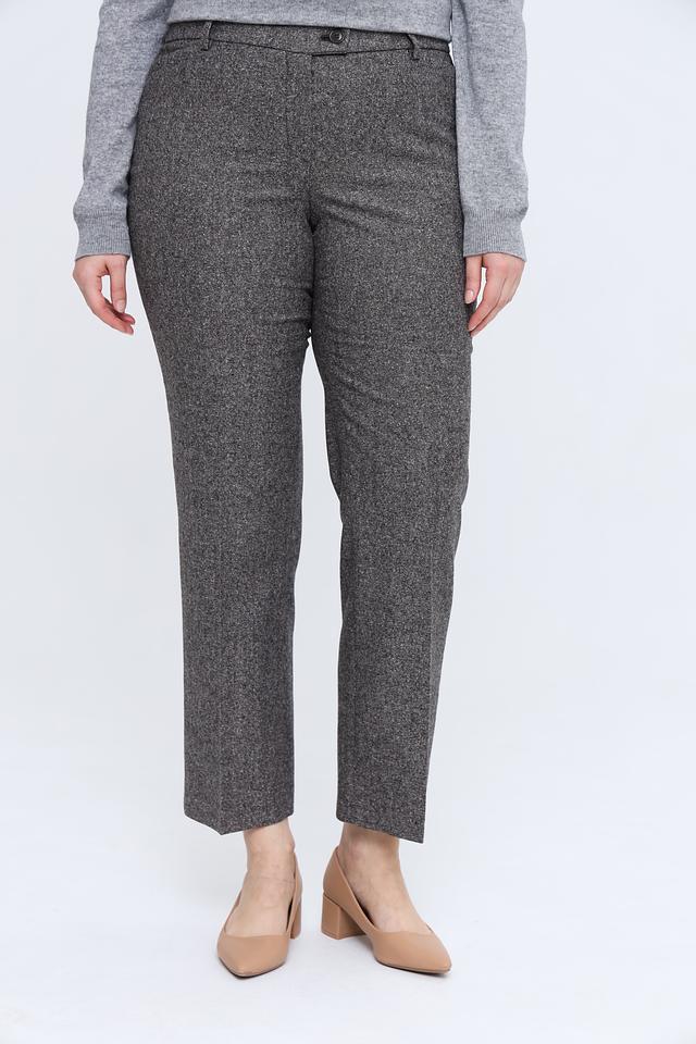 Брюки имеют прямой крой, который подчеркивает фигуру и обеспечивает свободу движений. Изготовлены из высококачественной ткани, в состав которой входит шерсть (50%), полиэстер (29%), хлопок (20%) и эластан (1%). Благодаря такому сочетанию материалов, брюки приятны к телу, хорошо держат форму и практически не мнутся.