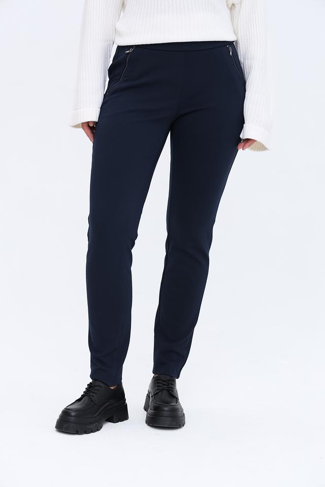 Особенностью данной модели являются декоративные молнии на карманах, которые придают брюкам современный и динамичный вид. Прямой крой и классическая посадка делают эти брюки универсальными и подходящими для различных типов фигуры. Они легко сочетаются с различными элементами одежды, от повседневных футболок до элегантных блузок и жакетов.