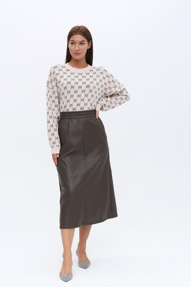 Юбка имеет классический крой и длину миди, что делает ее подходящей для различных случаев. Эластичный пояс обеспечивает удобную посадку по фигуре, а отсутствие карманов и декоративных элементов подчеркивает минималистичный дизайн.