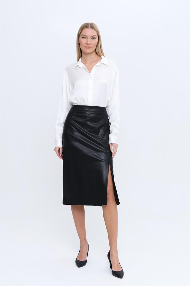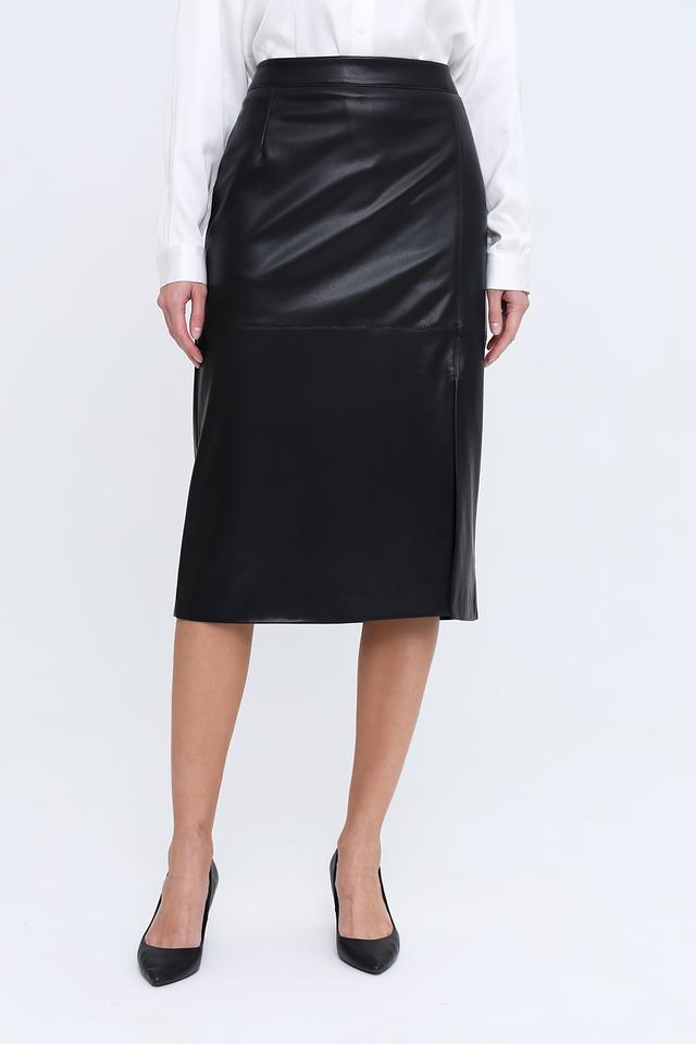 Юбка Gardeur кожаная чёрная с разрезом