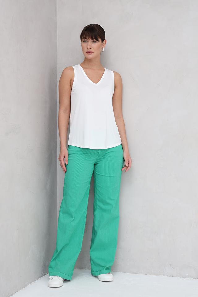 Модель оснащена стандартными карманами и застежкой на молнию. Брюки идеально подойдут для создания повседневных образов в сочетании с топами, рубашками или джемперами. Они прекрасно сочетаются с обувью на каблуке или плоской подошве.