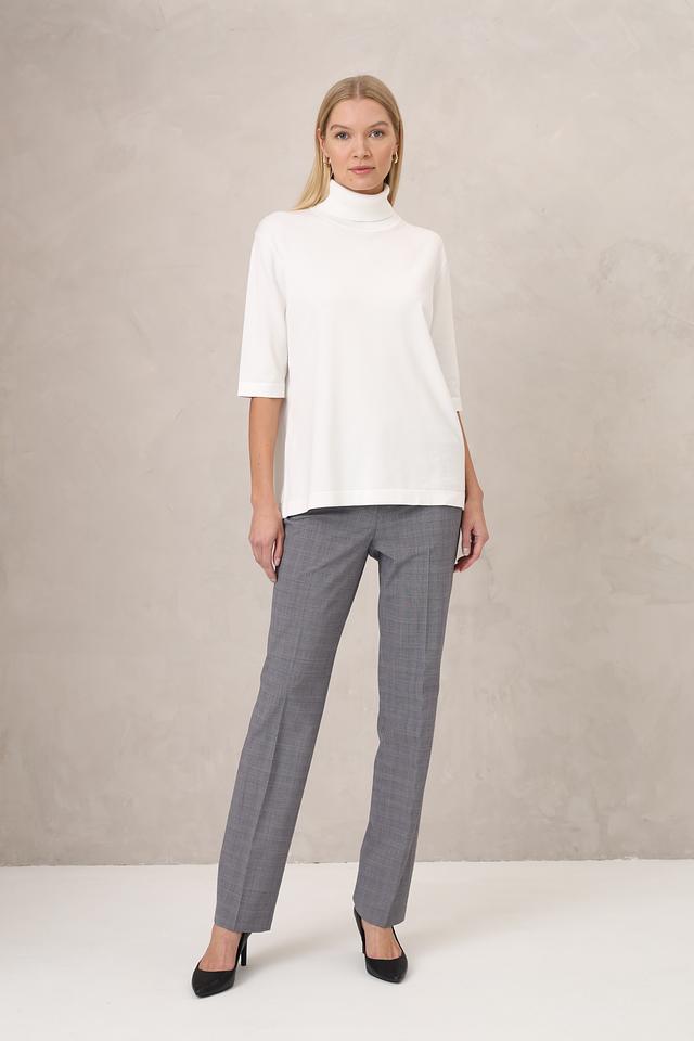 Брюки имеют прямой крой, который подчеркивает фигуру и обеспечивает свободу движений. Ткань в клетку придает им элегантный и утонченный вид, подходящий для деловых встреч и повседневной носки.