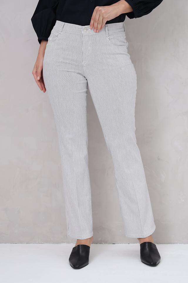 Классический крой и полосатый принт делают эти брюки универсальными – они легко сочетаются с различными видами верха, от повседневных футболок до элегантных блуз. Брюки идеально подойдут для создания как casual, так и более формальных образов.
