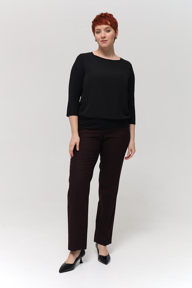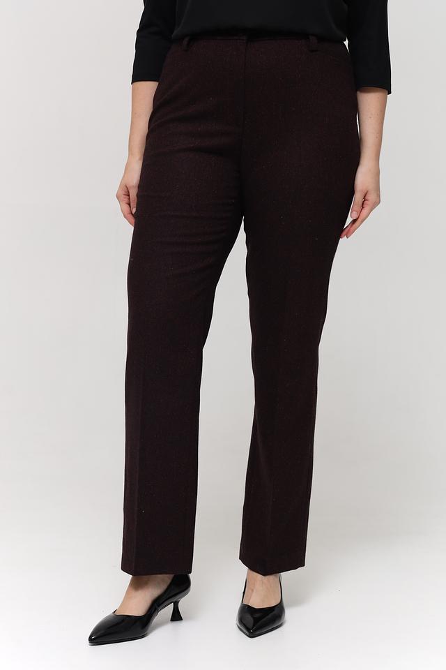 Крой брюк классический, прямой. Застежка – молния и пуговица. Предусмотрены боковые карманы и задние карманы с клапанами. Ткань имеет легкую текстуру, что придает брюкам изысканный вид. Данная модель идеально подойдет для создания деловых и повседневных образов.