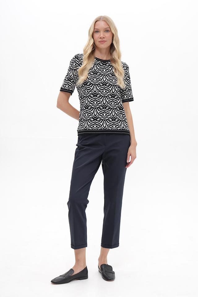 Брюки имеют прямой крой, пояс на пуговице и два боковых кармана. Задние карманы оформлены клапанами. Укороченная длина делает их идеальным выбором для создания современных образов.