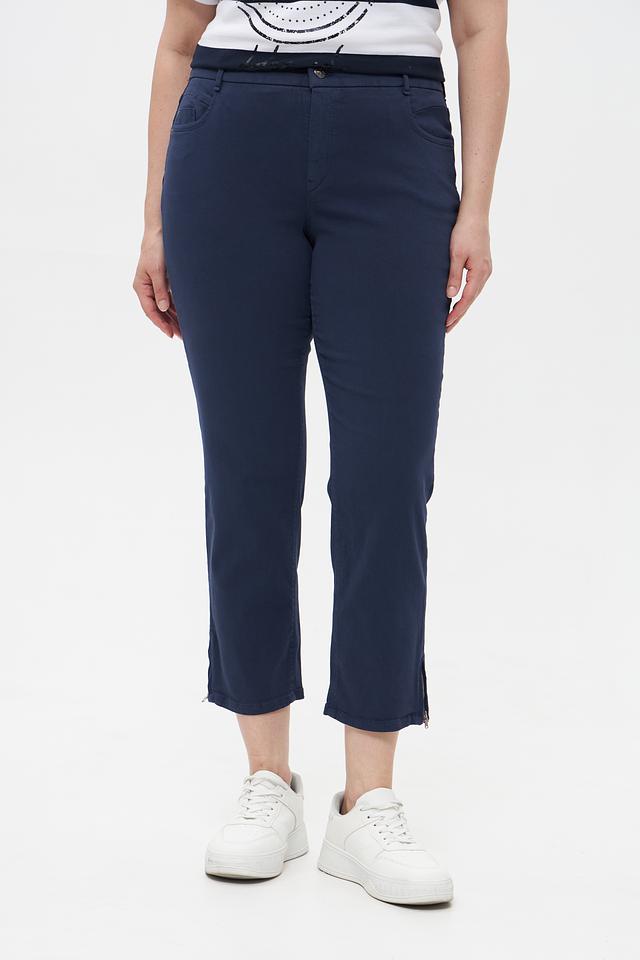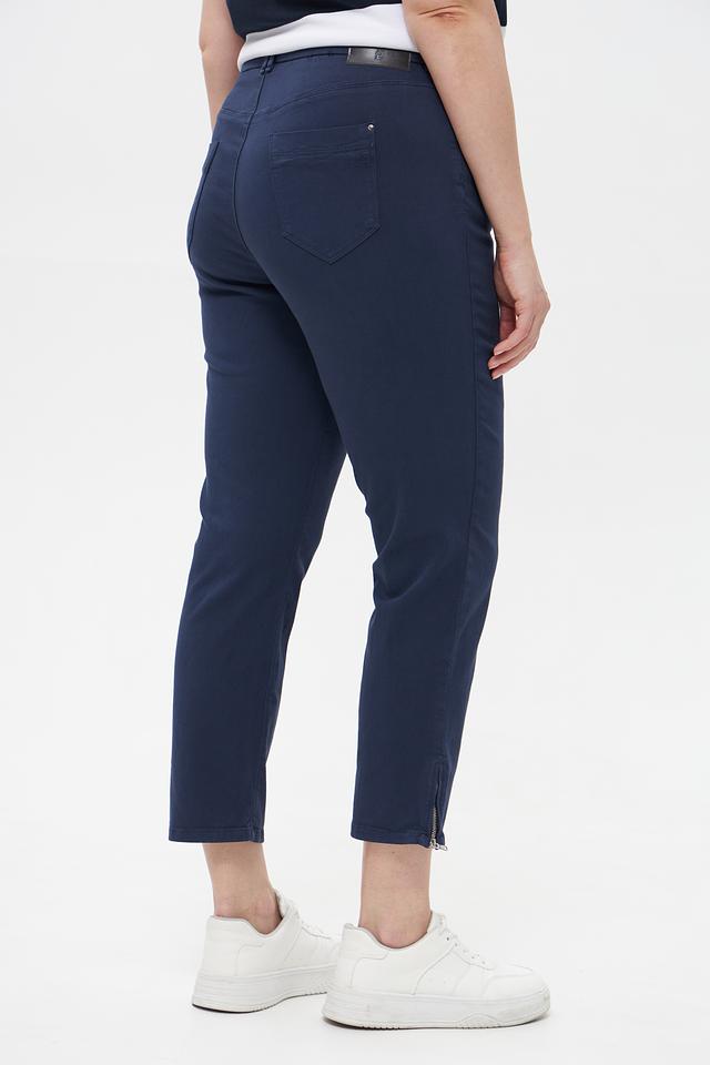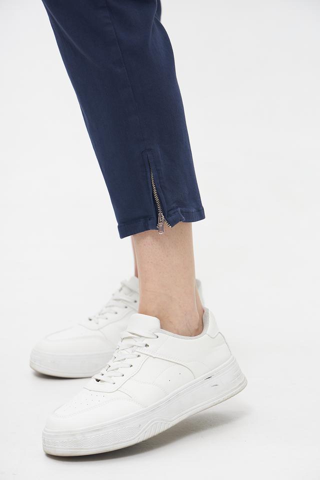 Оригинальным элементом дизайна являются молнии, расположенные на щиколотках, что добавляет брюкам современный акцент. Состав ткани обеспечивает приятные тактильные ощущения и долговечность изделия: 81% хлопок, 17% лиоцел, 2% эластан.