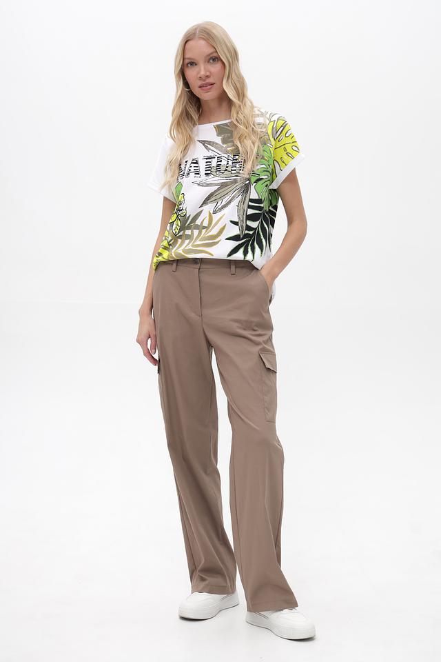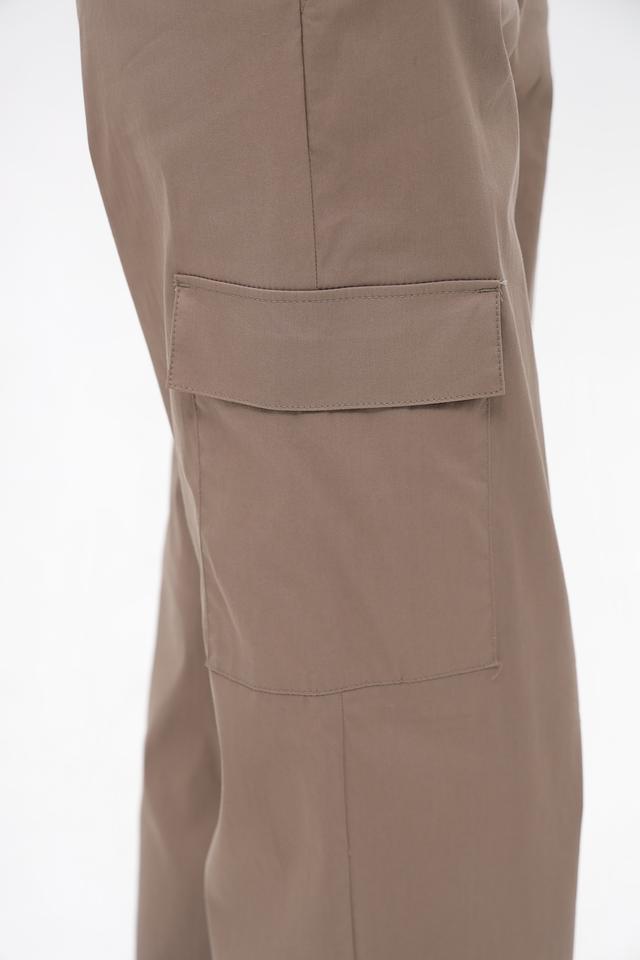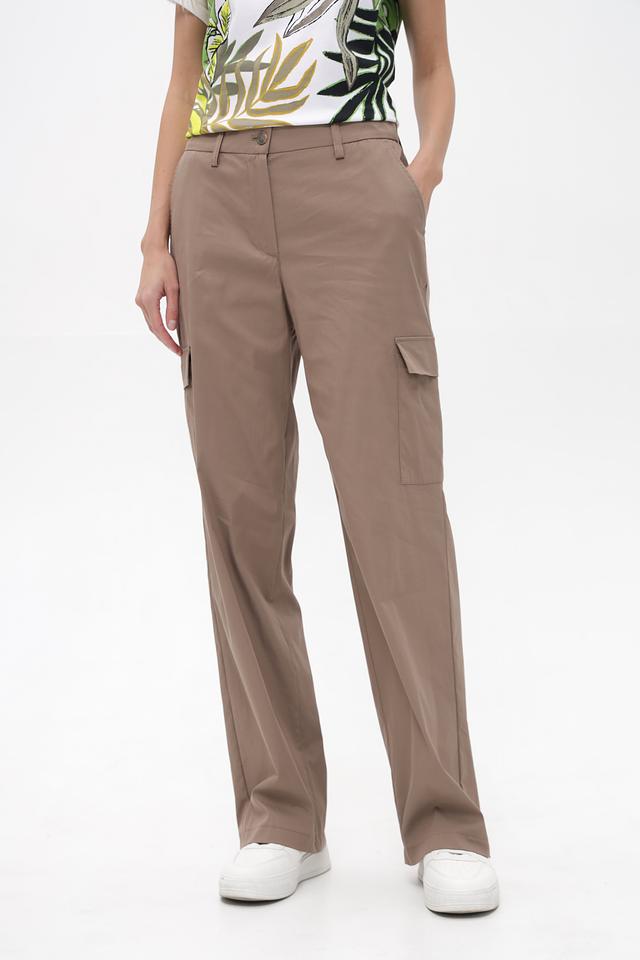 Брюки имеют прямой крой, который обеспечивает свободу движений и комфорт при носке. Наличие накладных карманов добавляет функциональности и стиля. Застежка на пуговицу и молнию обеспечивает надежную фиксацию.