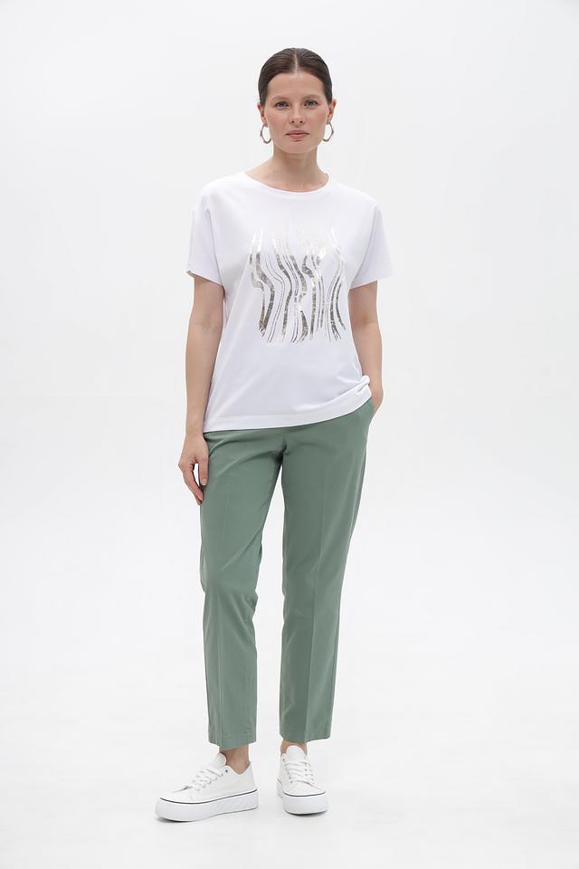 Брюки изготовлены из высококачественного хлопка (97%) с добавлением эластана (3%), что обеспечивает приятные тактильные ощущения, воздухопроницаемость и небольшую эластичность. Классический пояс на пуговицах и аккуратные боковые карманы делают эту модель универсальной и подходящей для различных образов.