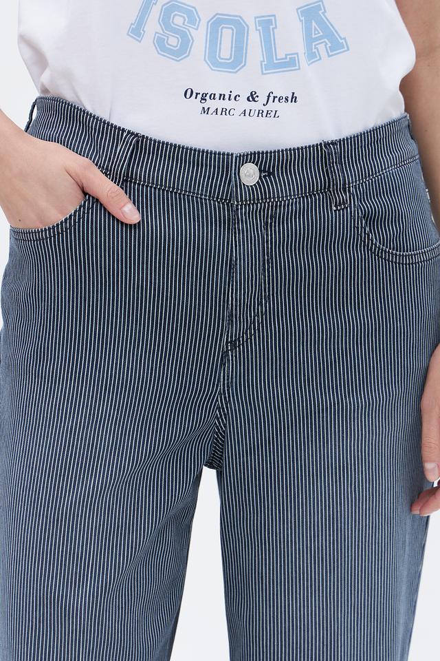 Брюки Gardeur синего цвета с вертикальной полоской. Модель выполнена из хлопка с добавлением эластана для комфортной посадки и свободы движений. Подходят для создания повседневных образов. Состав: хлопок 89%, эластомультиэстер 8%, эластан 3%