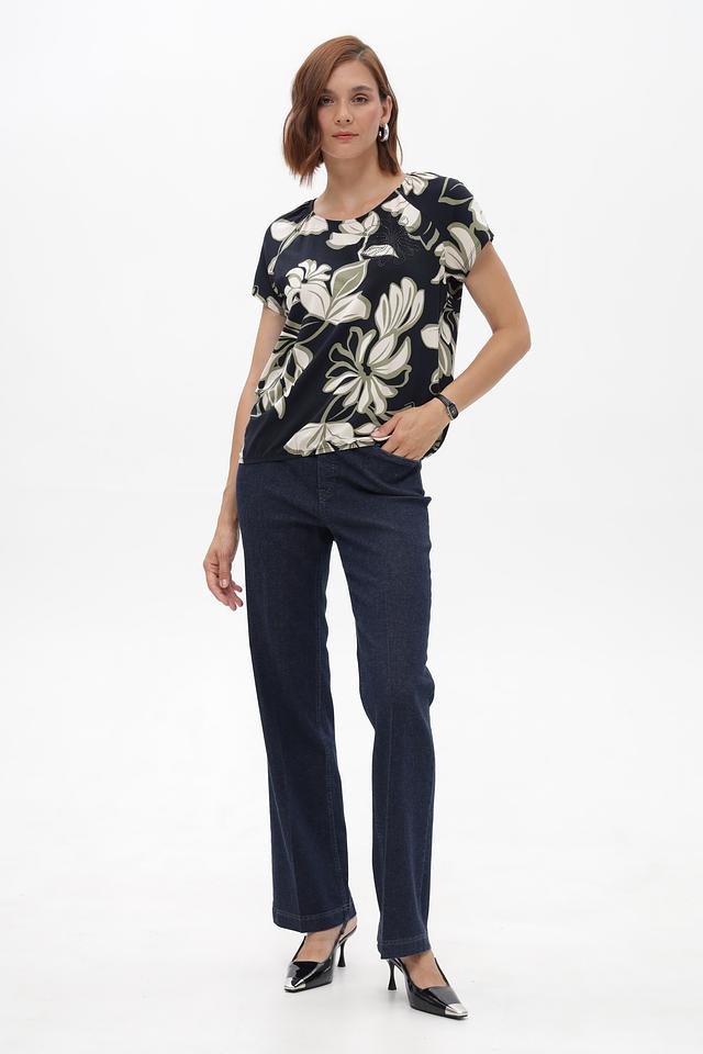 Джинсы имеют прямой крой и классическую посадку по фигуре. Ткань состоит из хлопка, лиоцела, полиэстера и эластана, что обеспечивает мягкость, воздухопроницаемость и небольшую степень эластичности.