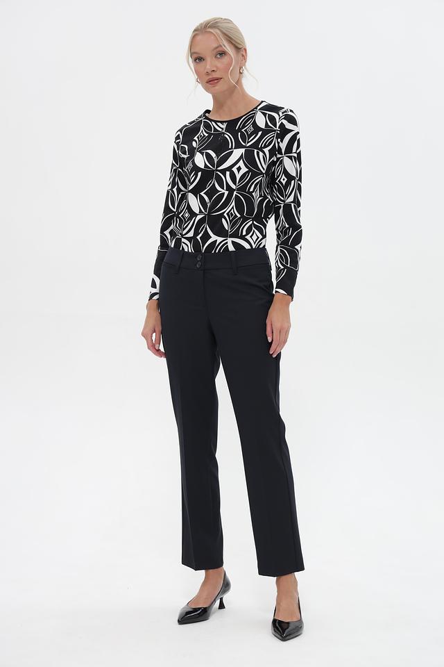 Благодаря своему универсальному черному цвету, эти брюки легко сочетаются с различными элементами одежды, от деловых блузок до повседневных футболок. Идеальный выбор для создания стильных и элегантных образов.