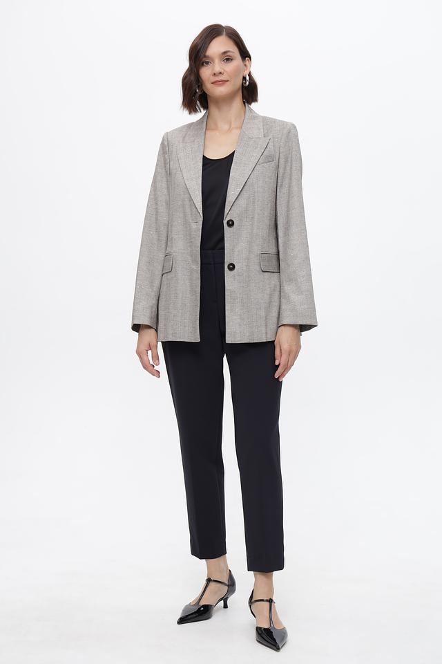 Представляем классические брюки от бренда Gardeur. Модель выполнена в черном цвете и имеет прямой крой, обеспечивающий комфортную посадку по фигуре.