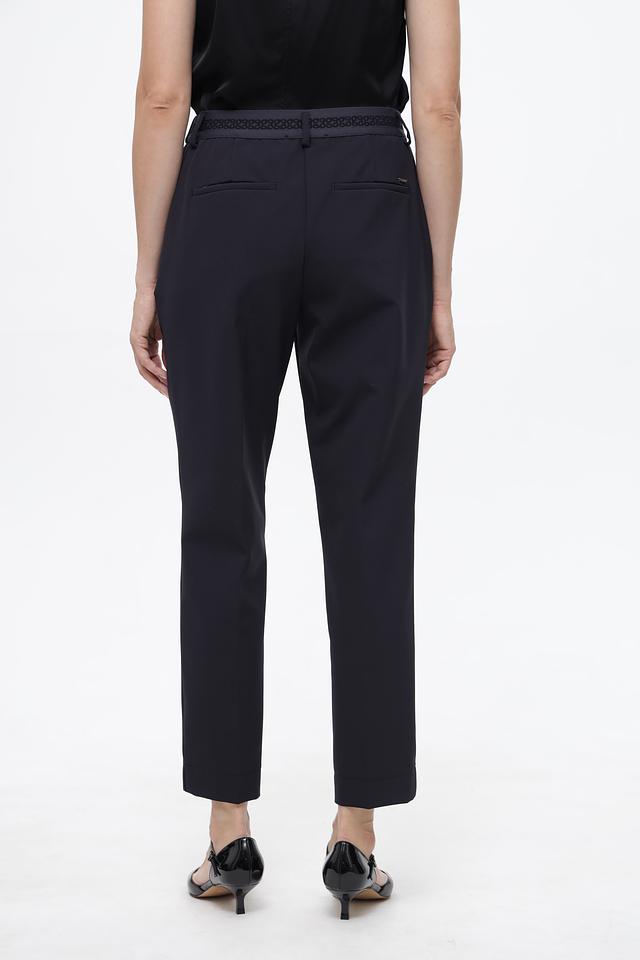 Декоративный пояс с рельефной текстурой придает брюкам элегантный вид. Укороченный крой делает модель актуальной и позволяет сочетать ее с различными видами обуви. Эти брюки станут отличным дополнением к вашему гардеробу, подходящим для деловых встреч и повседневной носки.