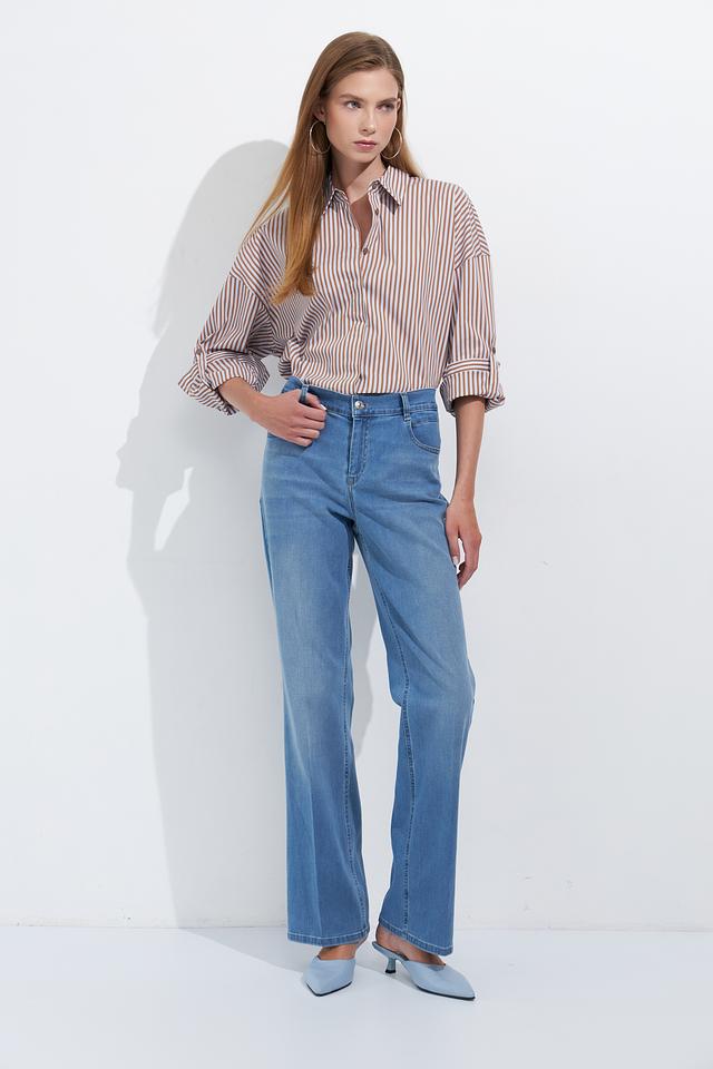 Высокая посадка подчеркивает талию и создает стройный образ. Джинсы имеют классические карманы спереди и накладные карманы сзади. Небольшой эффект потертости придает им непринужденный и современный вид. Эти джинсы станут отличным дополнением к вашему гардеробу и подойдут для создания различных образов – от повседневных до более нарядных.