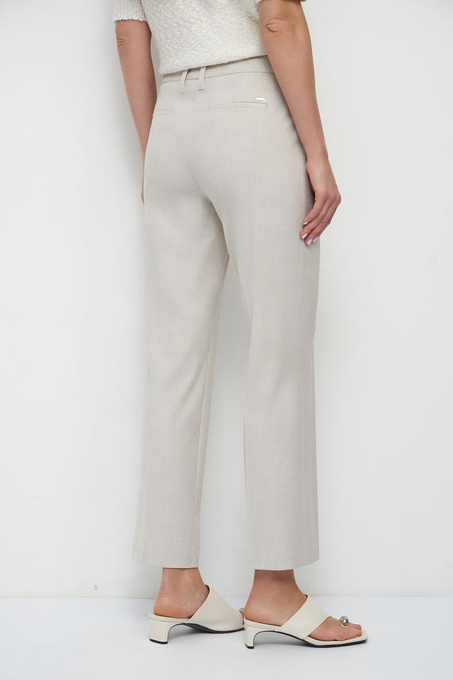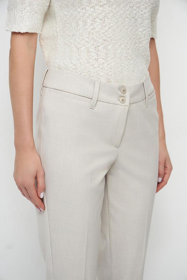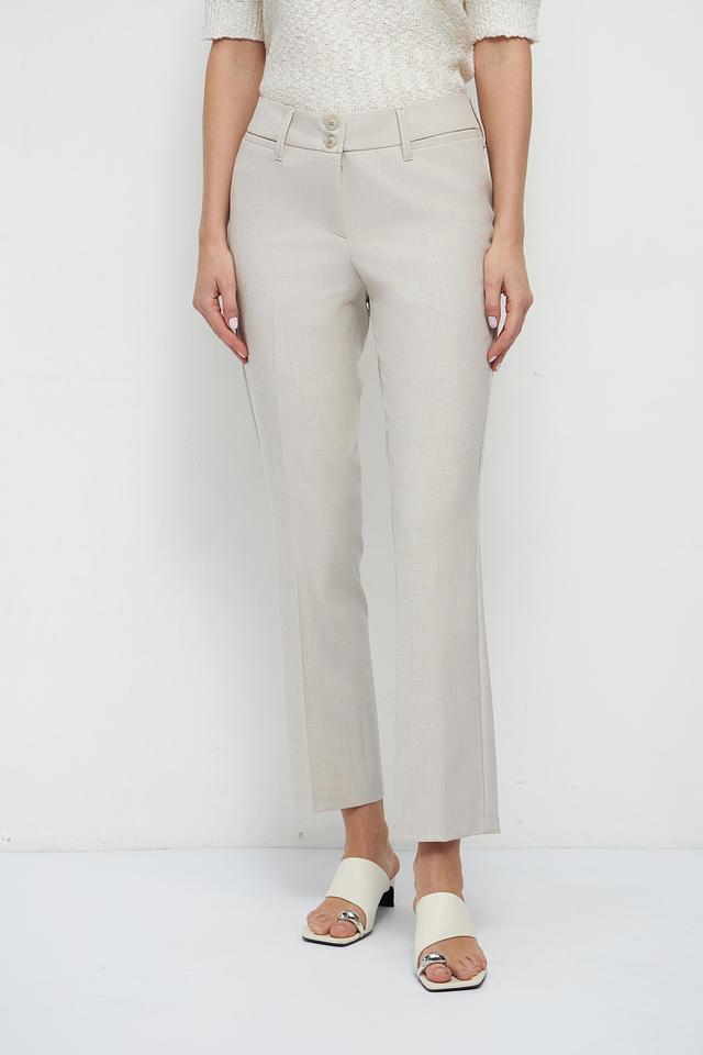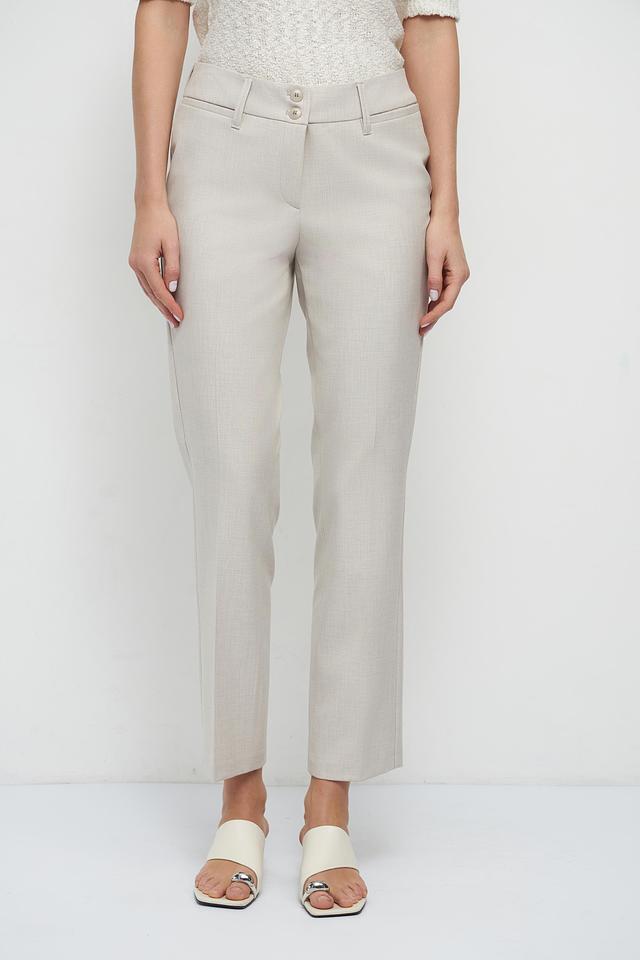 Модель имеет стандартную посадку по талии, застежку на пуговицы и молнию, а также боковые карманы. Прямой крой и аккуратный силуэт подчеркивают достоинства фигуры. Брюки идеально подойдут для работы, встреч и других мероприятий, требующих элегантного и сдержанного стиля.