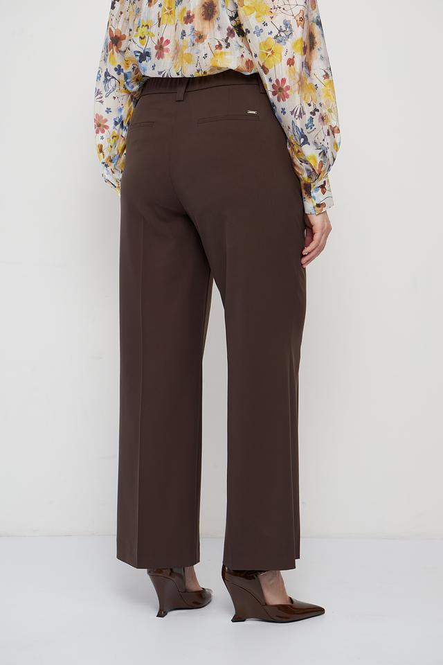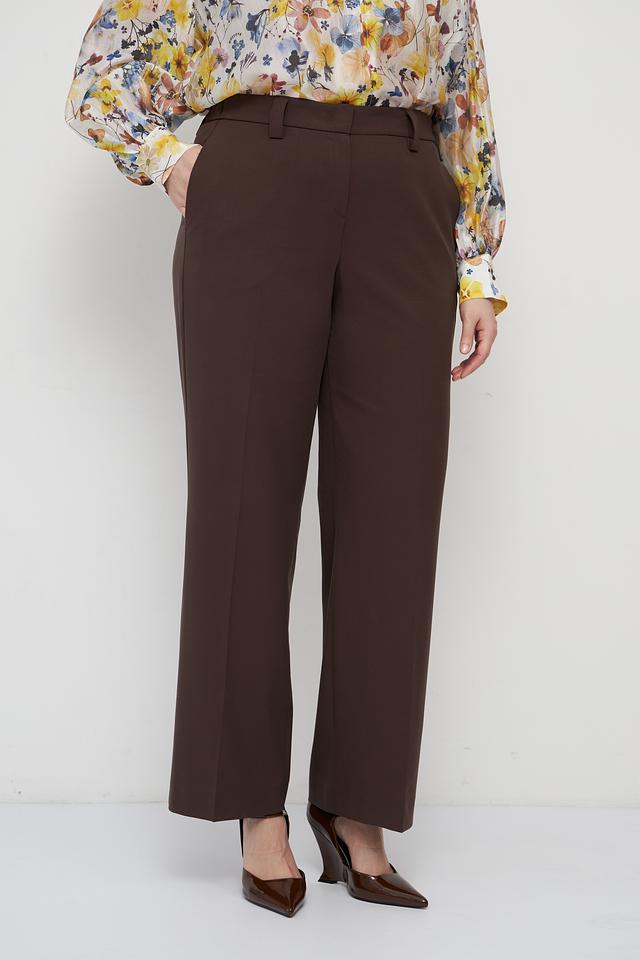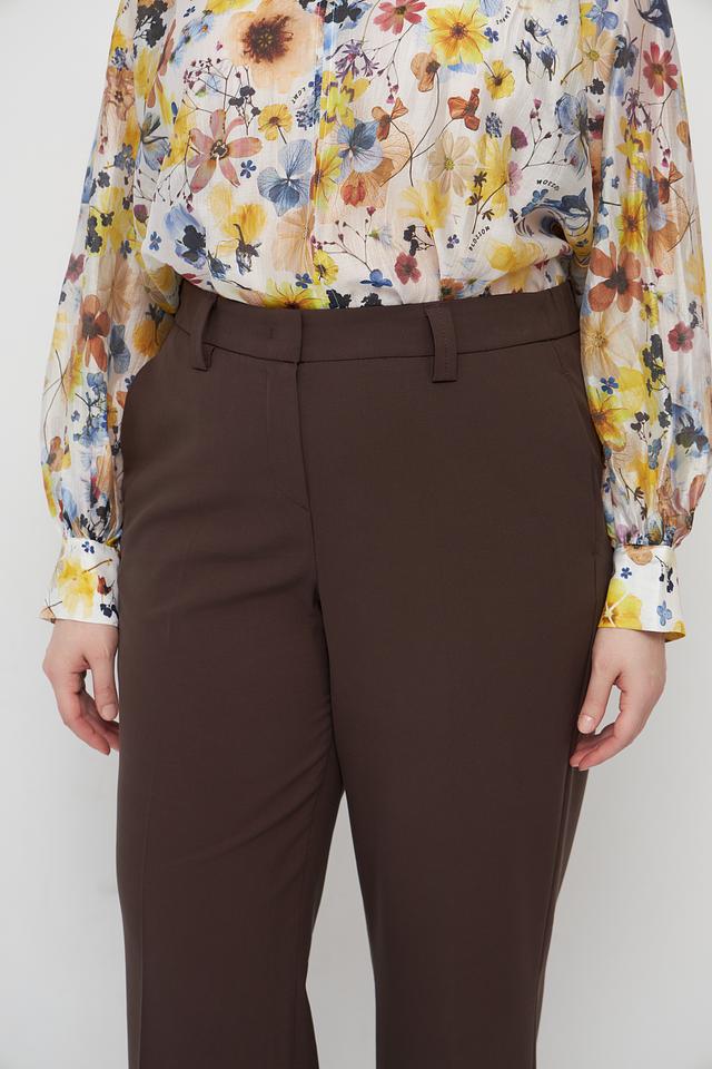 Брюки имеют прямой крой, который обеспечивает свободу движений и подходит для разных типов фигуры. Высокая посадка подчеркивает талию и создает элегантный силуэт. Застежка на молнию и пуговицу обеспечивает надежную фиксацию.