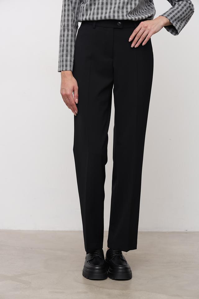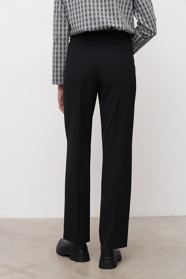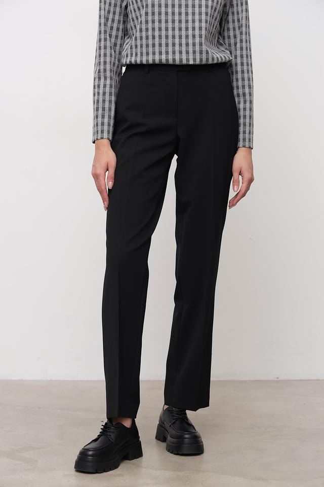Брюки имеют прямой крой и стандартную посадку по фигуре, что обеспечивает комфорт в носке. Ткань, состоящая из полиэстера, шерсти и эластана, приятна к телу, хорошо держит форму и практически не мнется.