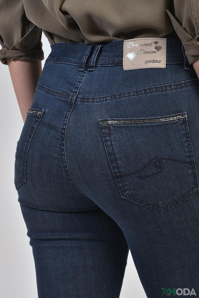Тёмно-синие джинсы Gardeur Slim Fit из комфортного смесового материала с добавлением эластана. Модель с высокой посадкой и зауженным силуэтом, оформлена декоративной фурнитурой и имеет эффект потертости. Состав: лиоцел 39%, хлопок 20%, вискоза 19%, полиэстер 19%, эластан 3%